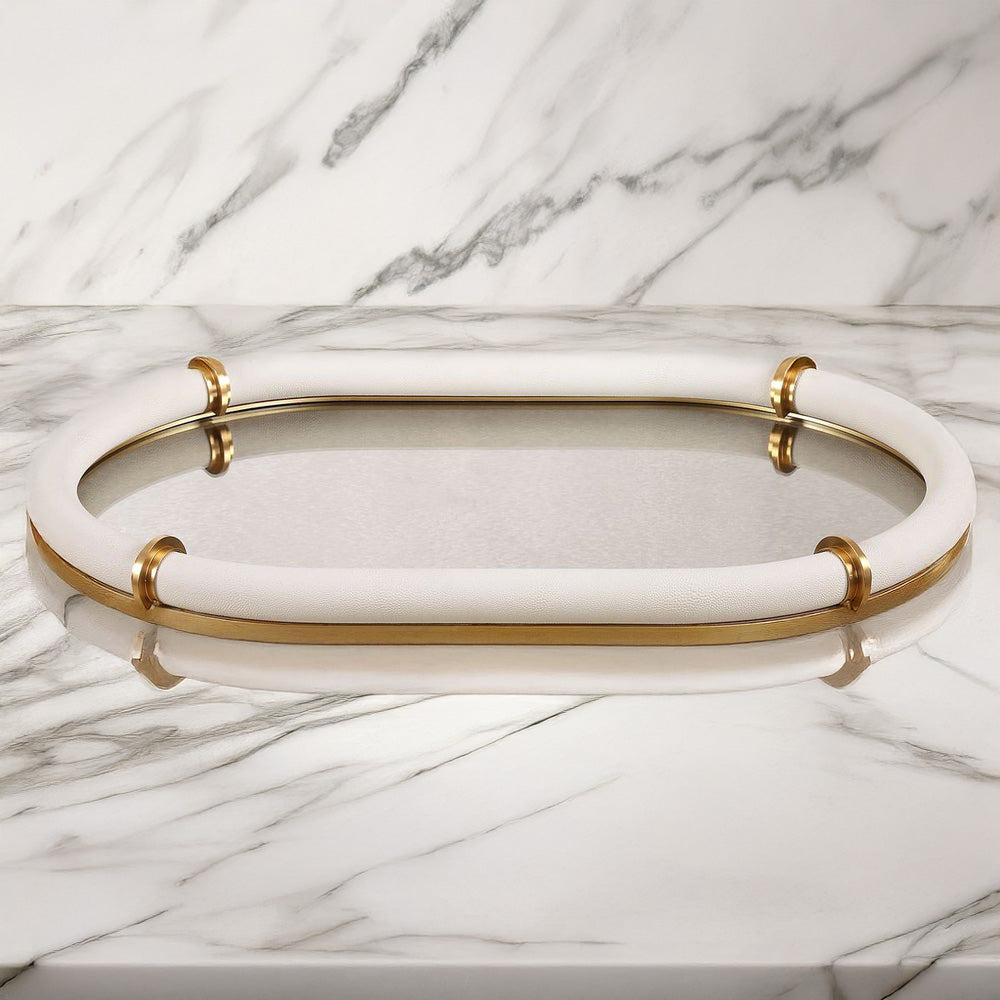 Placing a pair of sculptural candlesticks on the tray adds height and an element of sophistication. The candles bring a warm, inviting glow to the space, enhancing the overall ambiance.