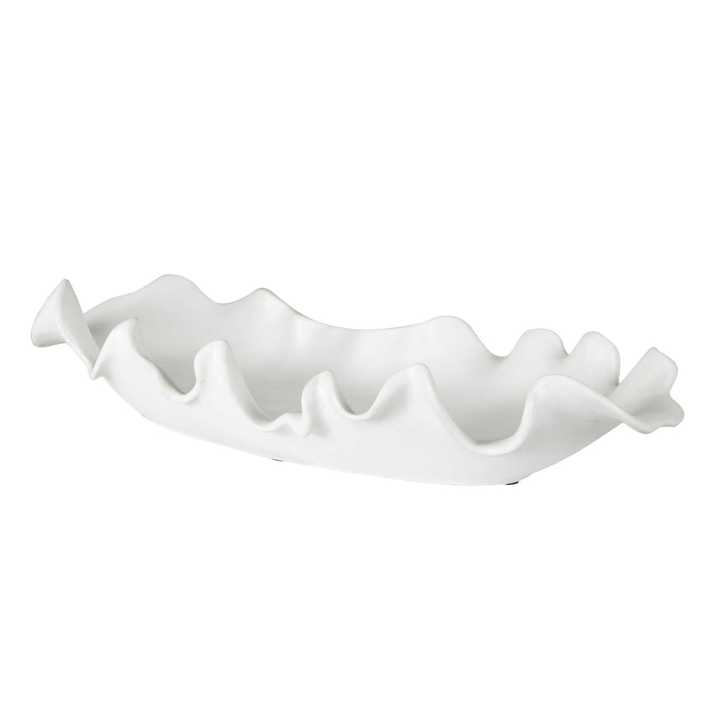 Two ceramic and glass sculptures add layers of texture and depth, contributing to the artistic vibe while maintaining a sleek and modern aesthetic. These pieces are carefully chosen to complement each other, creating a harmonious balance between form and function. The standout element of the setup is the bold statement piece wave sculpture, which commands attention with its dramatic curves and fluid lines. This sculpture not only serves as a visual anchor but also adds a sense of movement and energy to the arrangement.