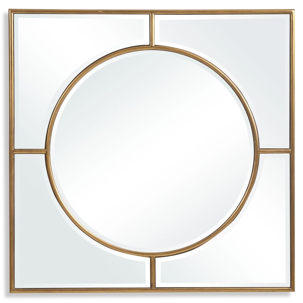 Add dramatic flair with this glam full length mirror blending metallic gold leaf ironwork and clear acrylic bars in a versatile design. The mirror has a generous 1 1/4" bevel and can easily hang vertically or horizontally