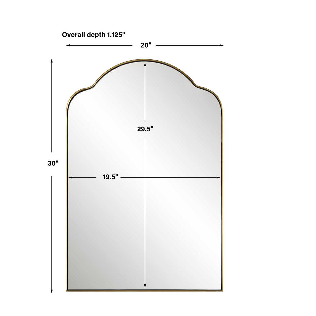 This mirror features a soft scalloped shape and brushed brass arch mirror. A floating polished-edge mirror gives it a light, refined feel that works anywhere.