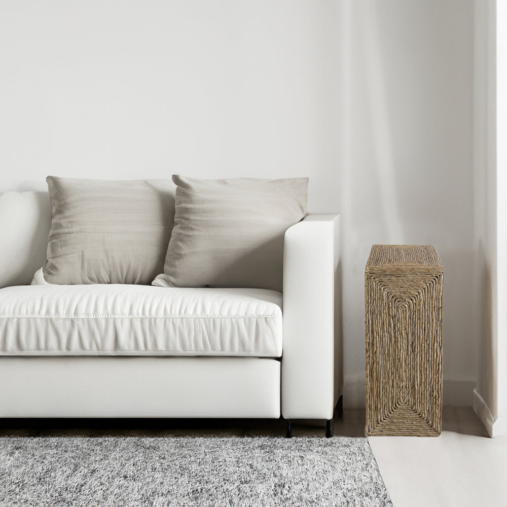 Our coastal end table is woven out of natural banana plant. It's the perfect accent for a narrow hallway or modern beach house. The best affordable side table.