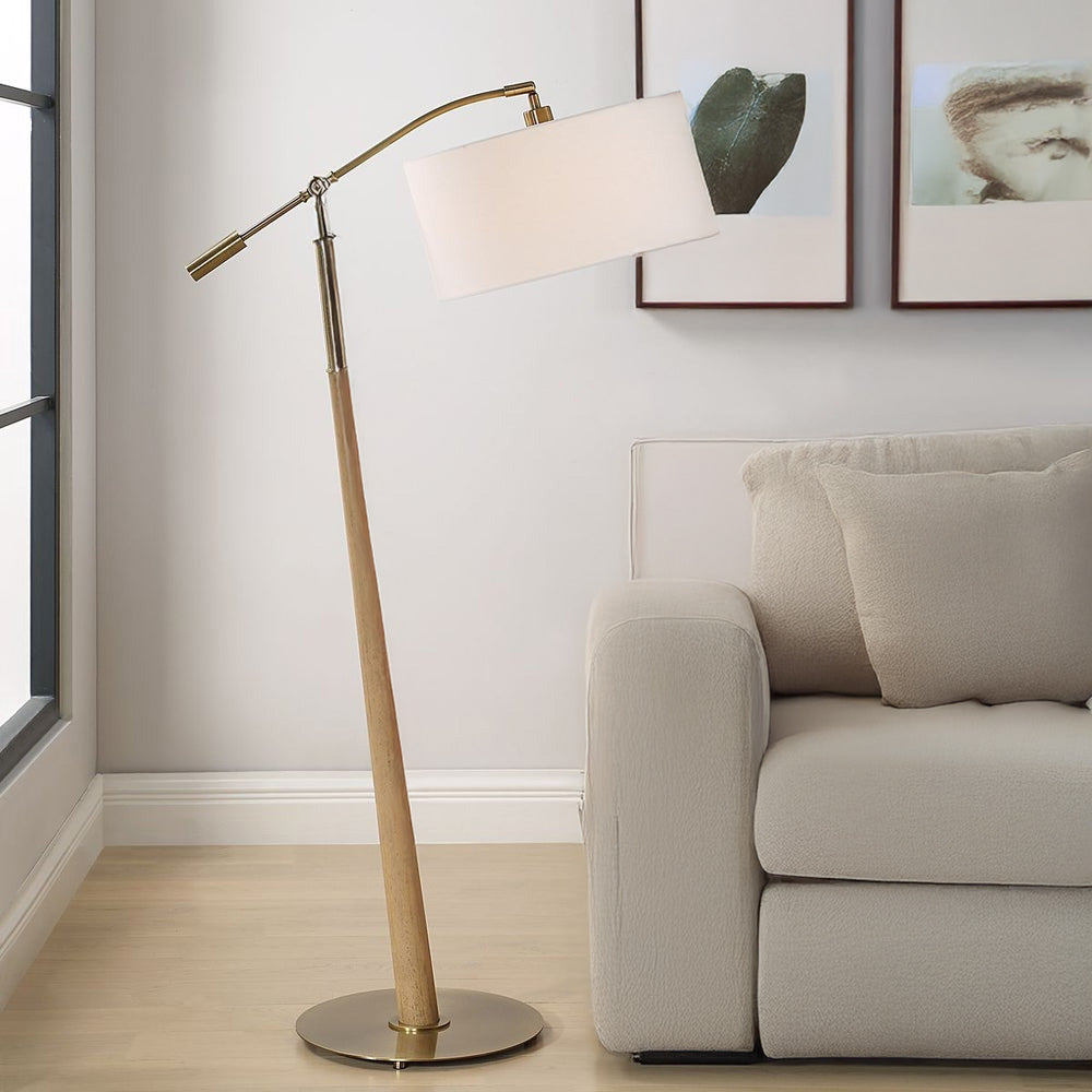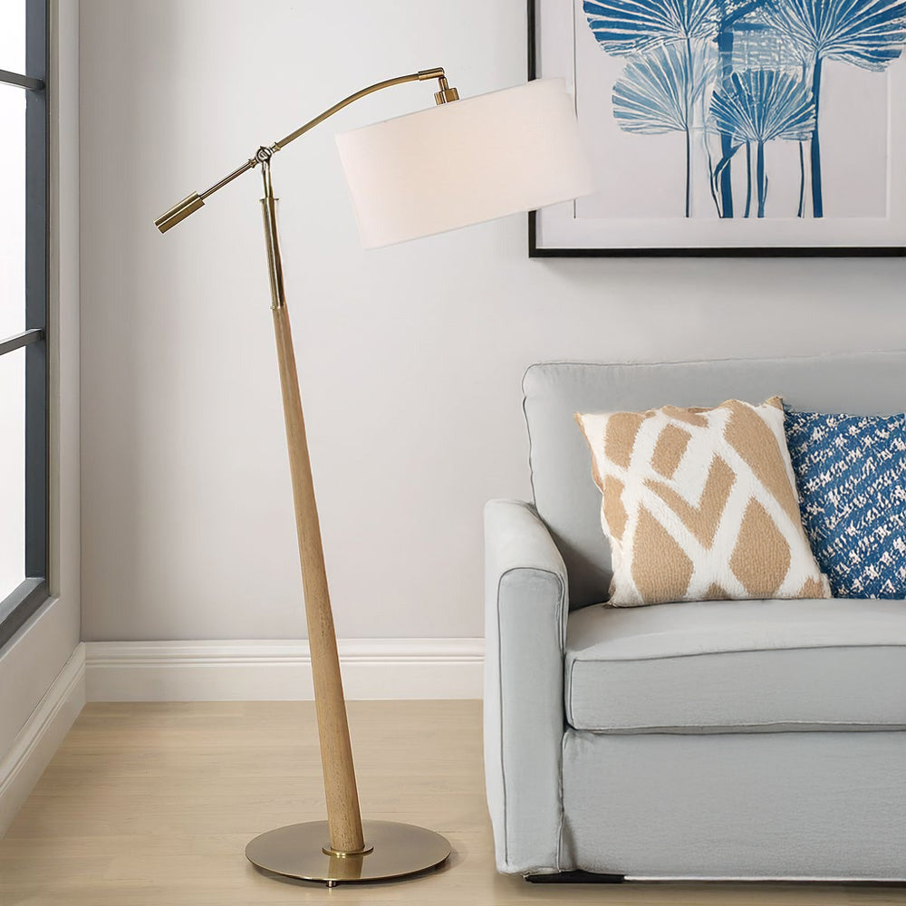 This floor lamp is a customer favorite because it combines elegance, versatility, and functionality. The tapered wooden base adds warmth and a natural element, making it perfect for coastal, farmhouse, or transitional interiors. The antique brass accents provide a touch of sophistication, while the adjustable arm and crisp white linen shade ensure practicality and customizable lighting. Whether placed next to a sofa for reading or as a statement piece in a living room, its thoughtful design blends style and utility seamlessly. Customers love how it enhances their space while maintaining a relaxed, approachable charm.