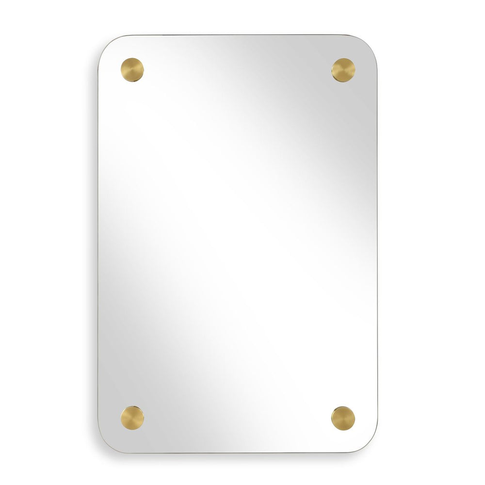 This shaped mirror features a hand forged metal frame finished in lightly textured, dark brown with burnished edges and gold highlights.