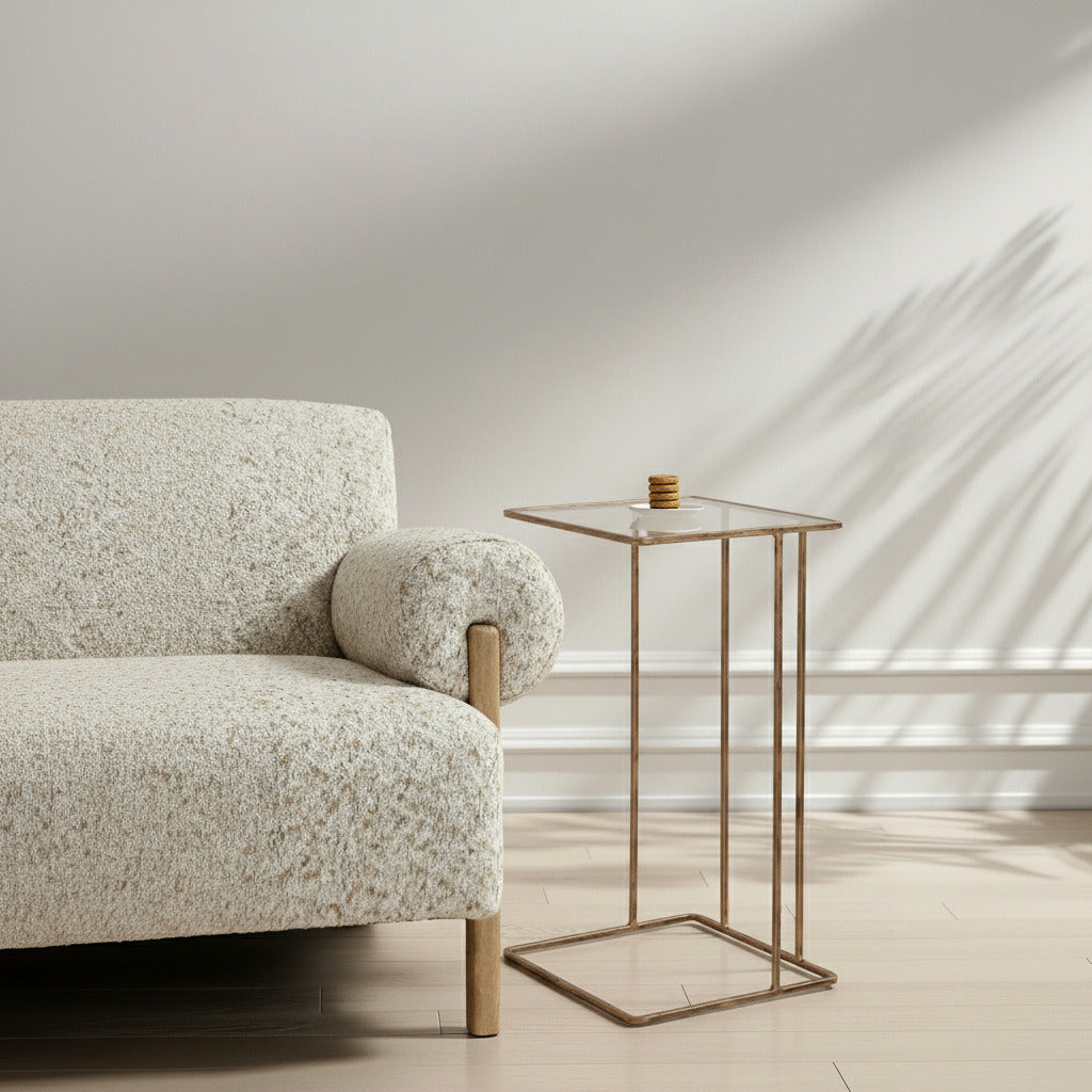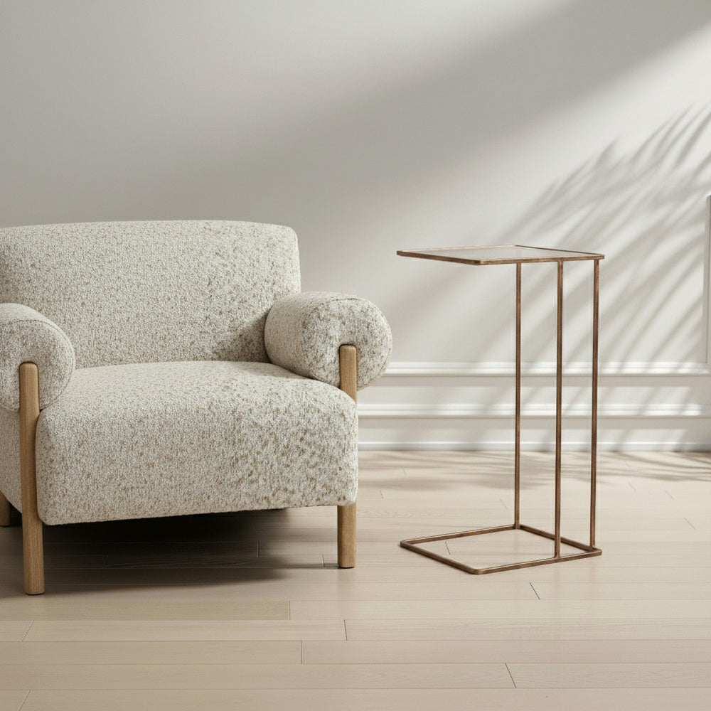 Shop our antique gold side table in a soft antique gold finish. This vintage style c-table is the perfect size for a drink, a candle, or a small stack of books.
