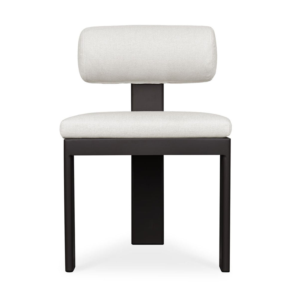 This chair has a solid oak frame stained in dark walnut, giving strength and warmth. The hand-shaped T back design adds detail, while faux shearling upholstery brings soft texture. The floating barrel back supports the body while the cushioned seat offers relaxed seating. Upholstered in linen toned faux shearling, it combines softness with everyday practicality.