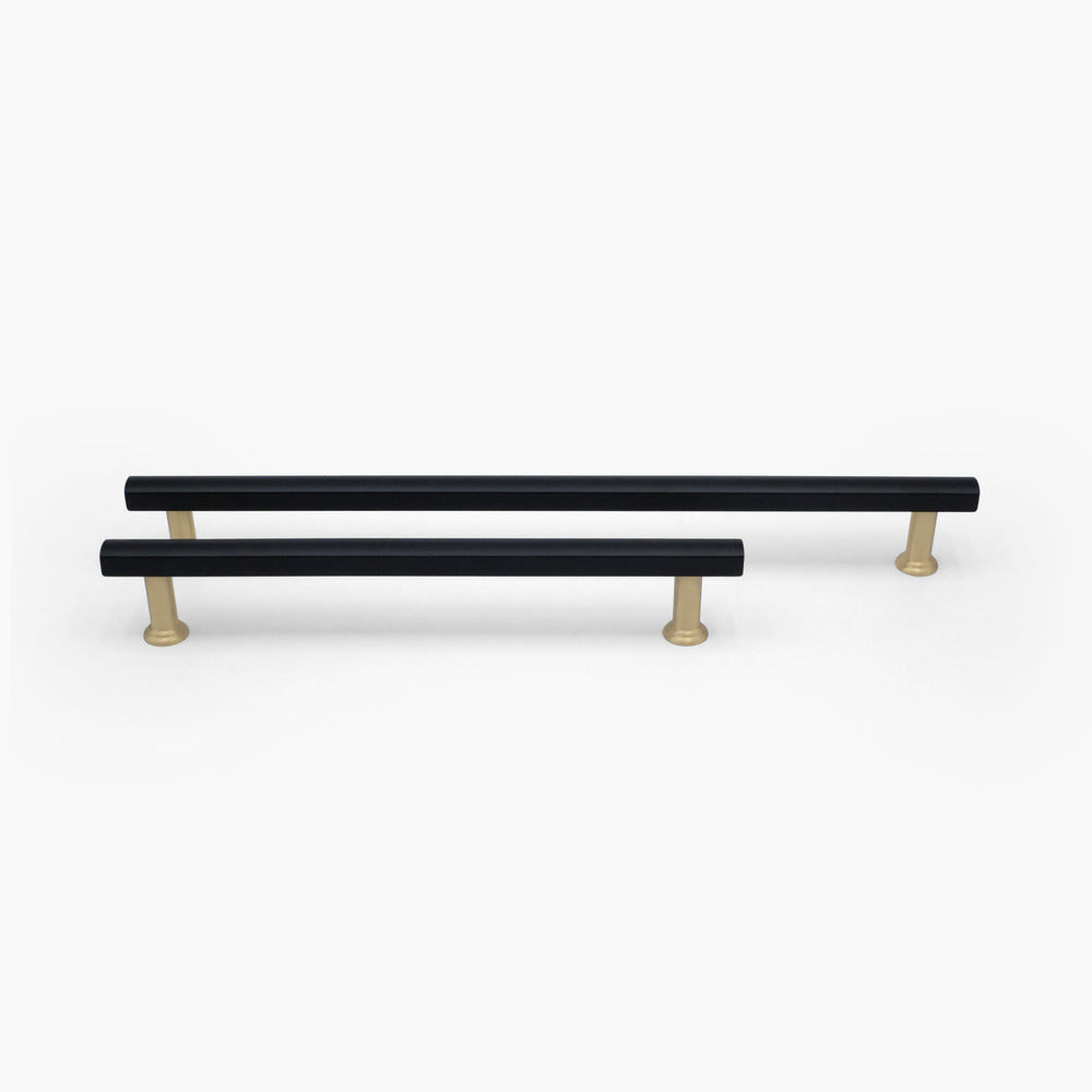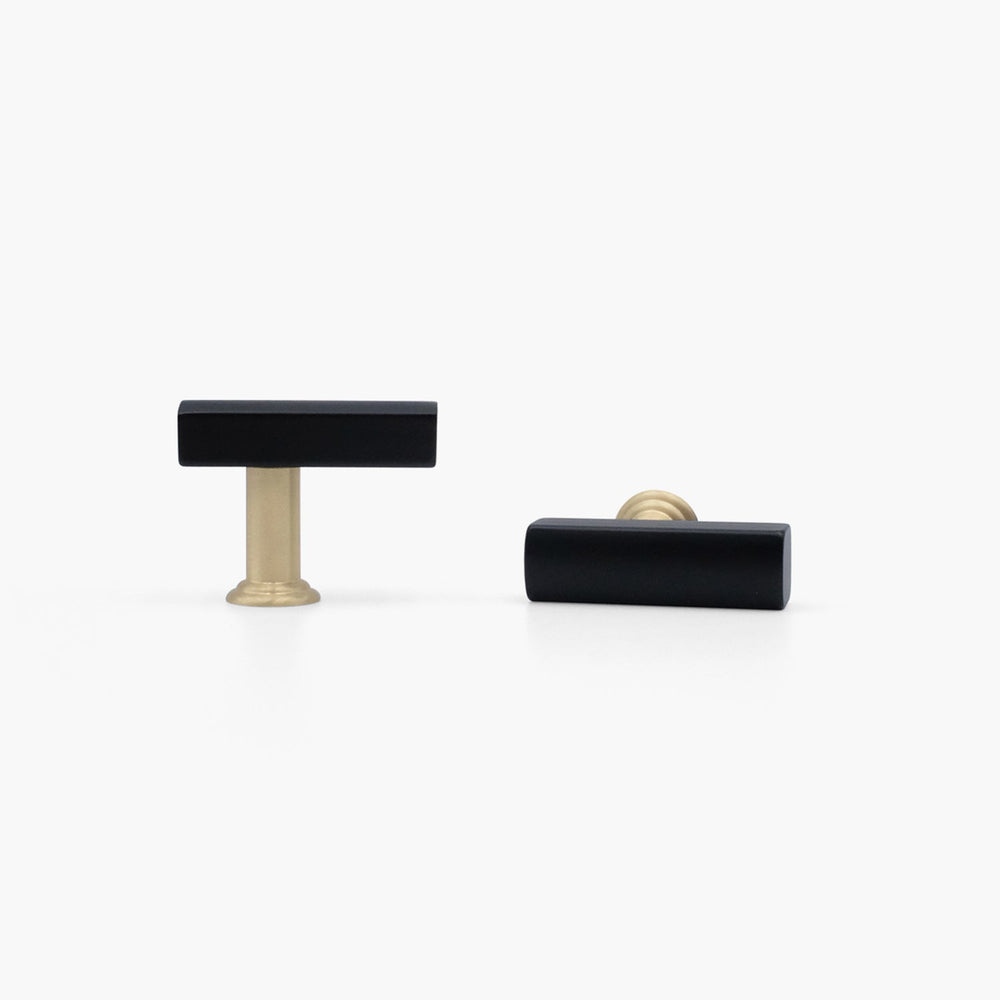 One standard size, four finish combinations, solid brass construction. The Mod T-Knob works great on cabinet doors, drawers, most anything that can open, or on your walls as a hook.