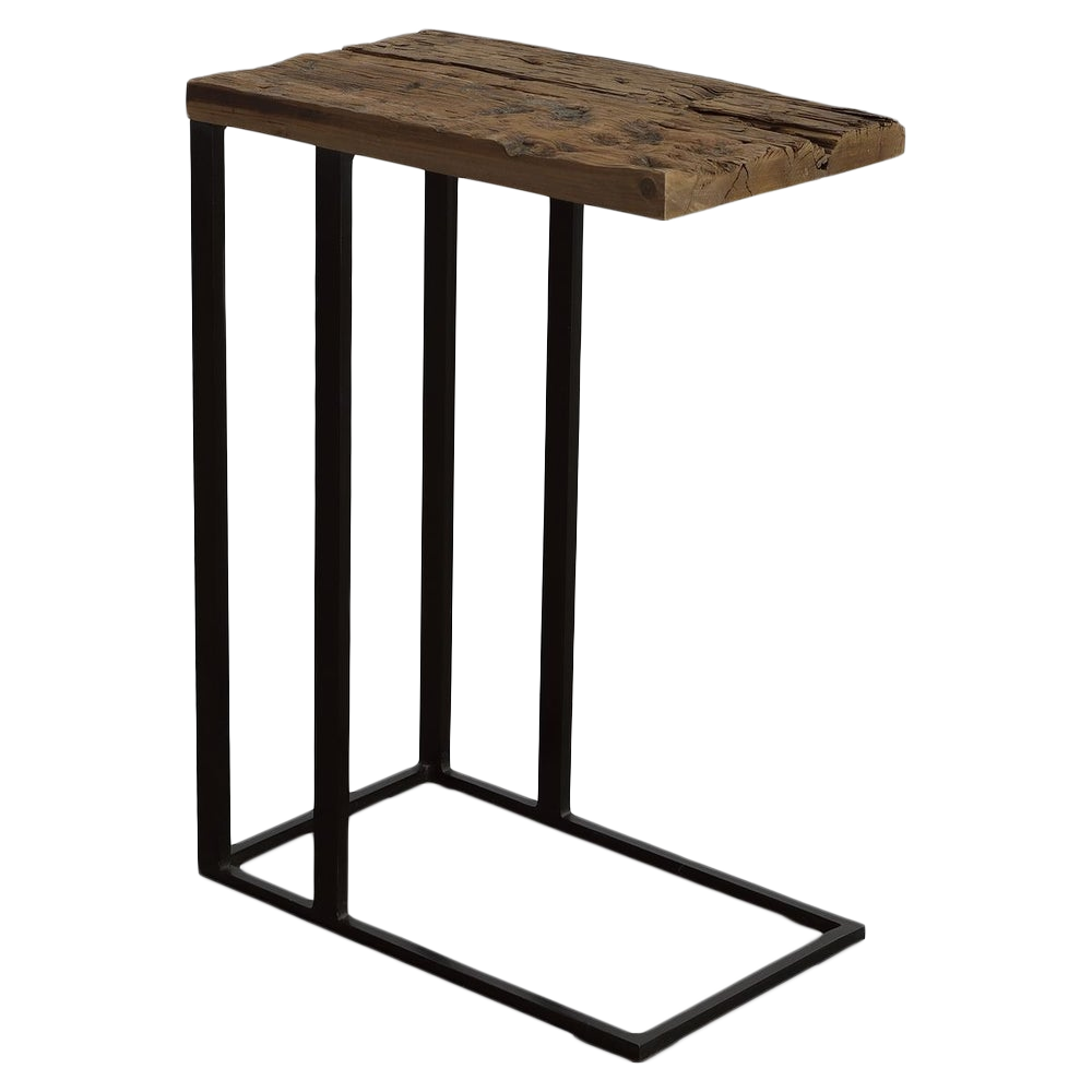 This rustic farmhouse style accent piece is perfect next to a sofa, bench or chair. This reclaimed wood c table is 17 inches long and 10 inches wide. It's solid wood surface and iron frame make it this piece a sturdy staple.