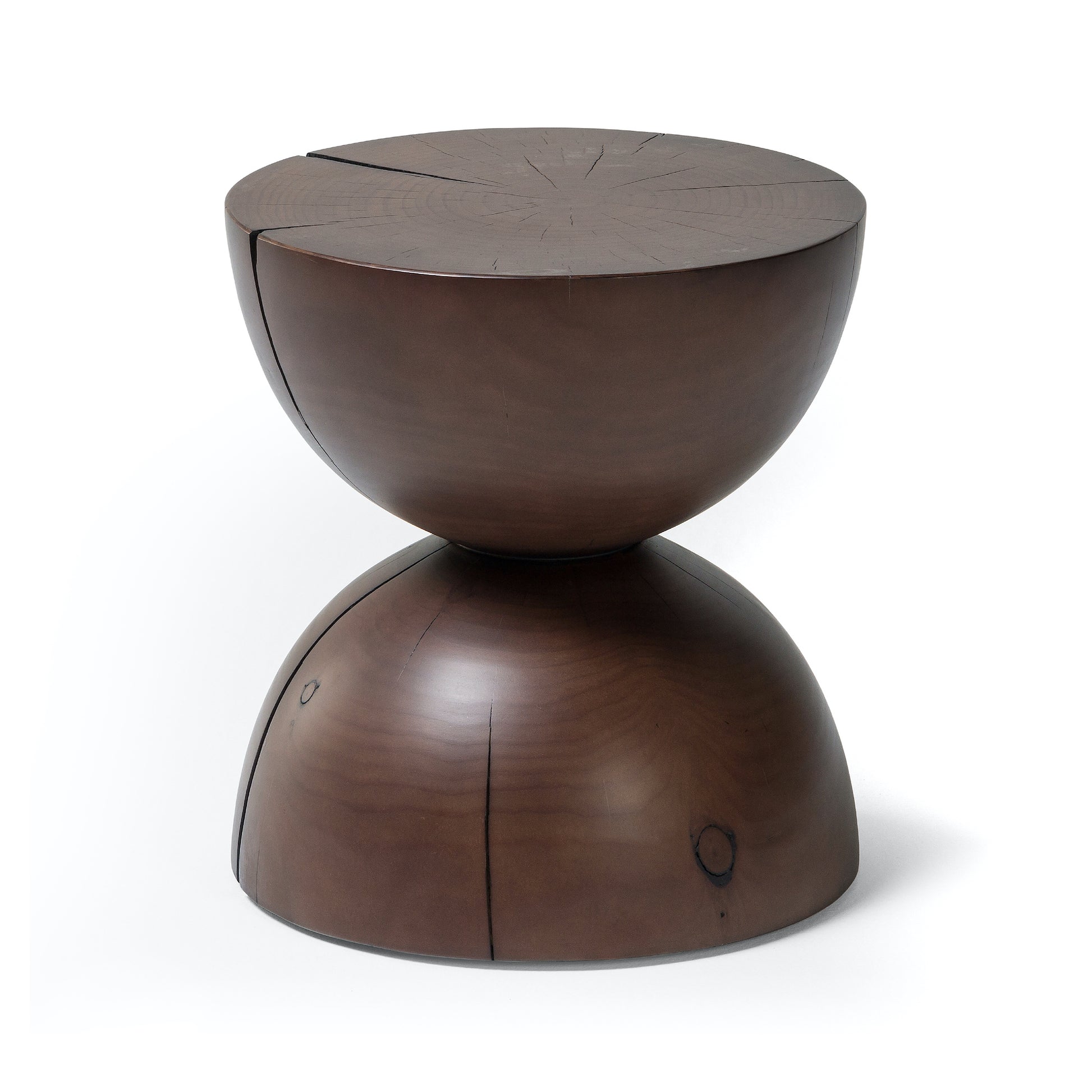 Solid natural pine fashions into an hourglass silhouette for an organic look. Makes for a handy extra surface solo or paired. Due to materials' natural essence, cracks are to be expected and may develop over time. Knots, color variance and stains will vary from piece to piece, so no two are alike.