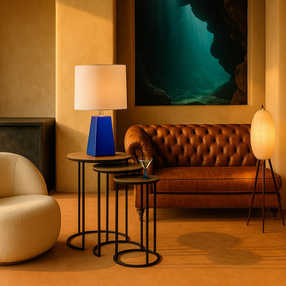Upgrade your living room with these round nesting side tables. Textured antique nickel tops and aged black iron frames create a bold mix of function and artistic flair. This set of 3 is perfect for the design loving member of your family. These statement pieces feature a textured cast aluminum slab top finished in a plated antique nickel.