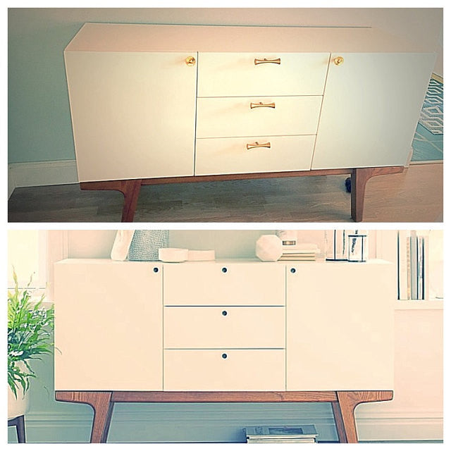 Satin Gold "Century" Drawer Pull. Our unique mid-century modern "Century" cabinet hardware collection is a perfect fit for those looking for mid-century style cabinet knobs and drawer handles. This collection features mid-century modern inspired lines with modern finishes to fit your kitchen cabinet and furniture projects alike.