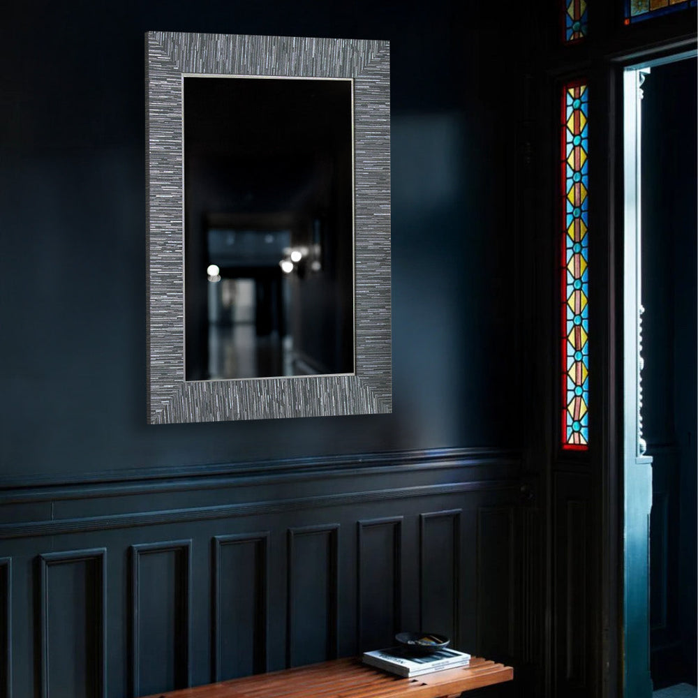 The mirror is aged gold and has an exterior edge with a 1" bevel.