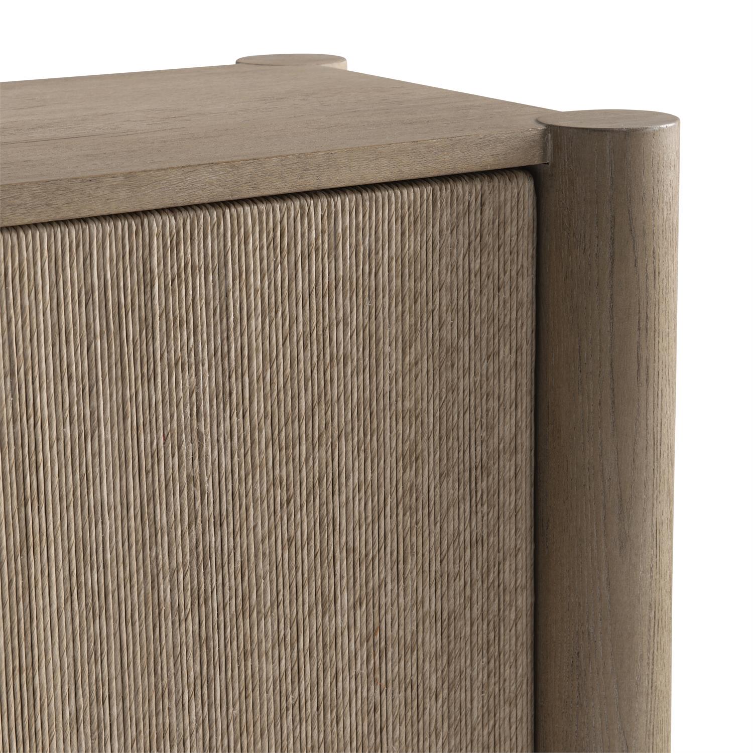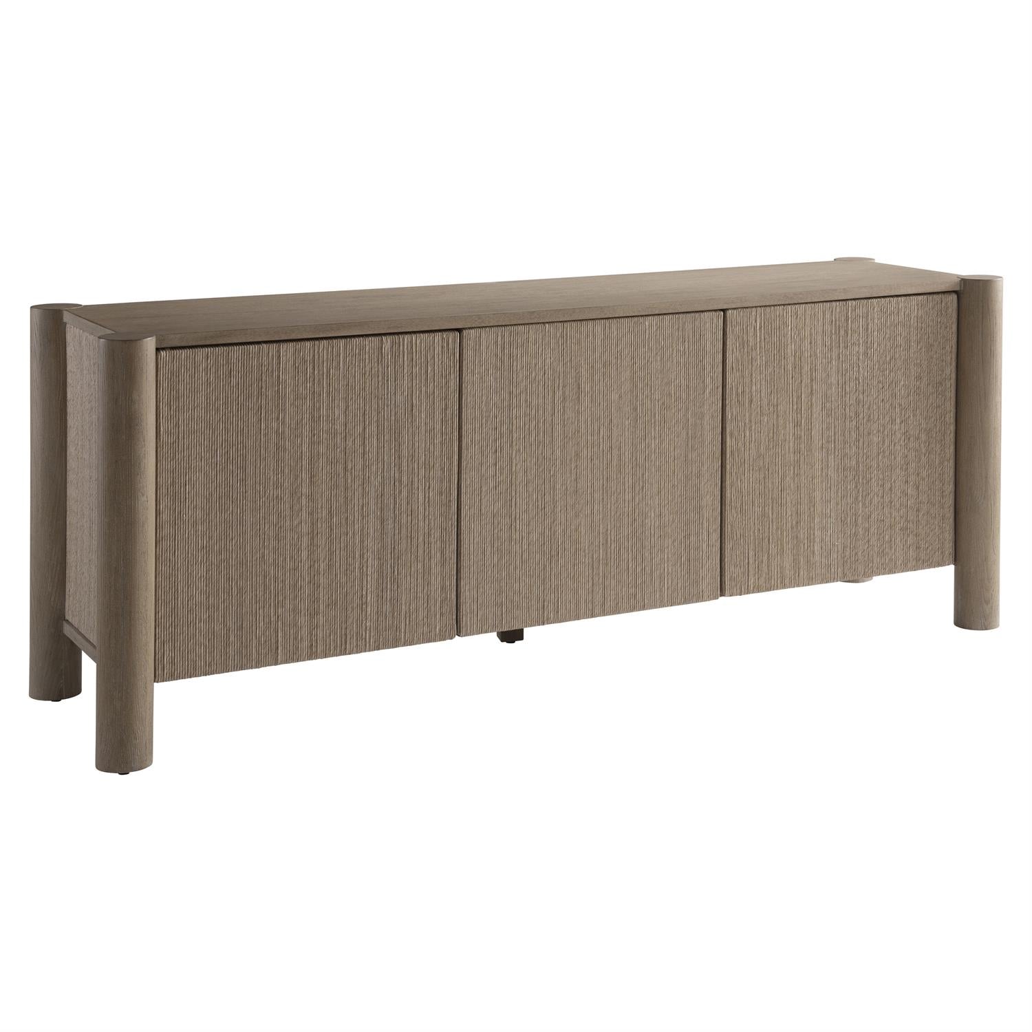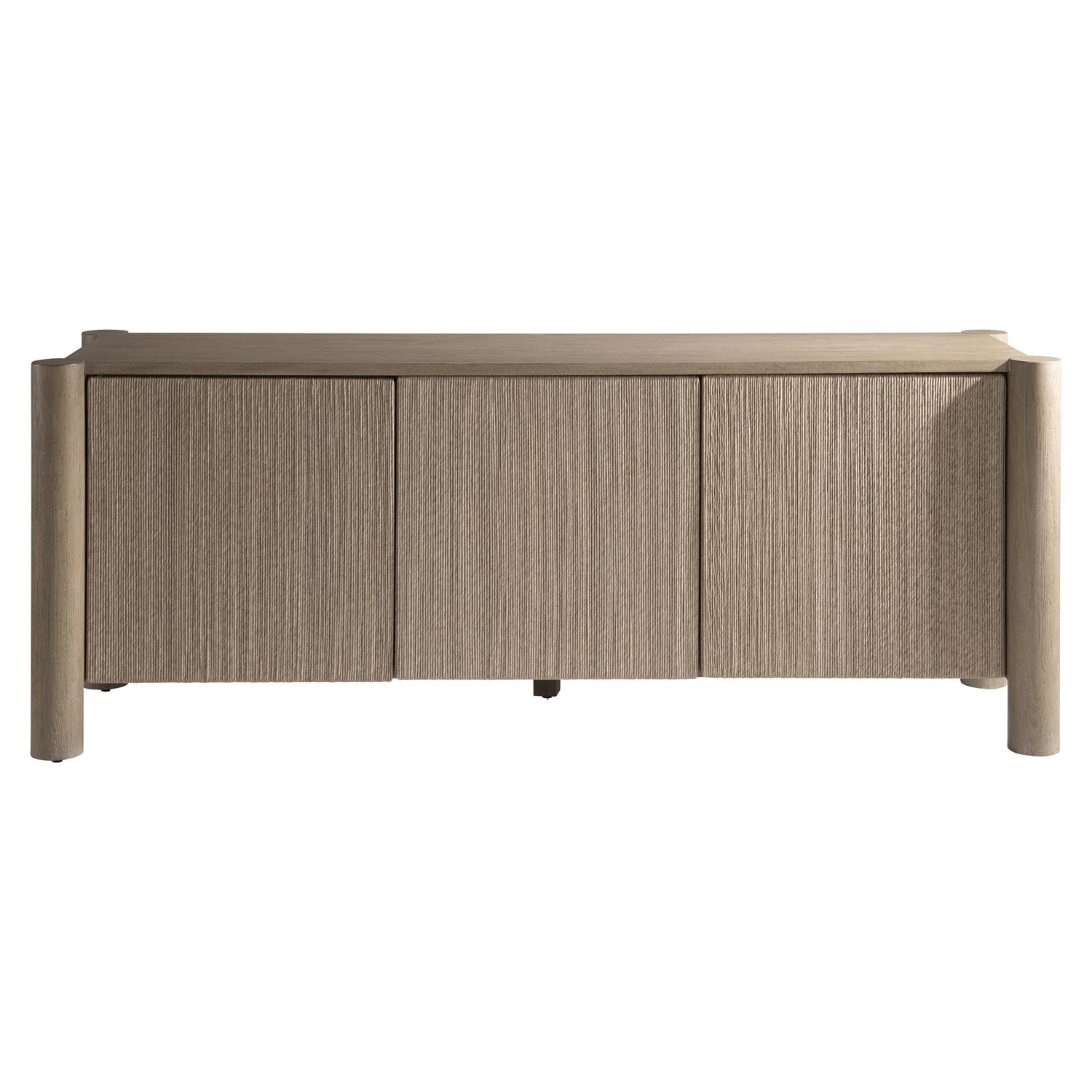 • Behind paired doors are one fixed shelf with two center drawers with hand-pull cutouts